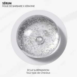 Enrichi en kératine réparatrice et en huile de figue de barbarie, ce sérum pénètre profondément pour nourrir, protéger et lisser la fibre capillaire, même sur les cheveux les plus secs ou abîmés.